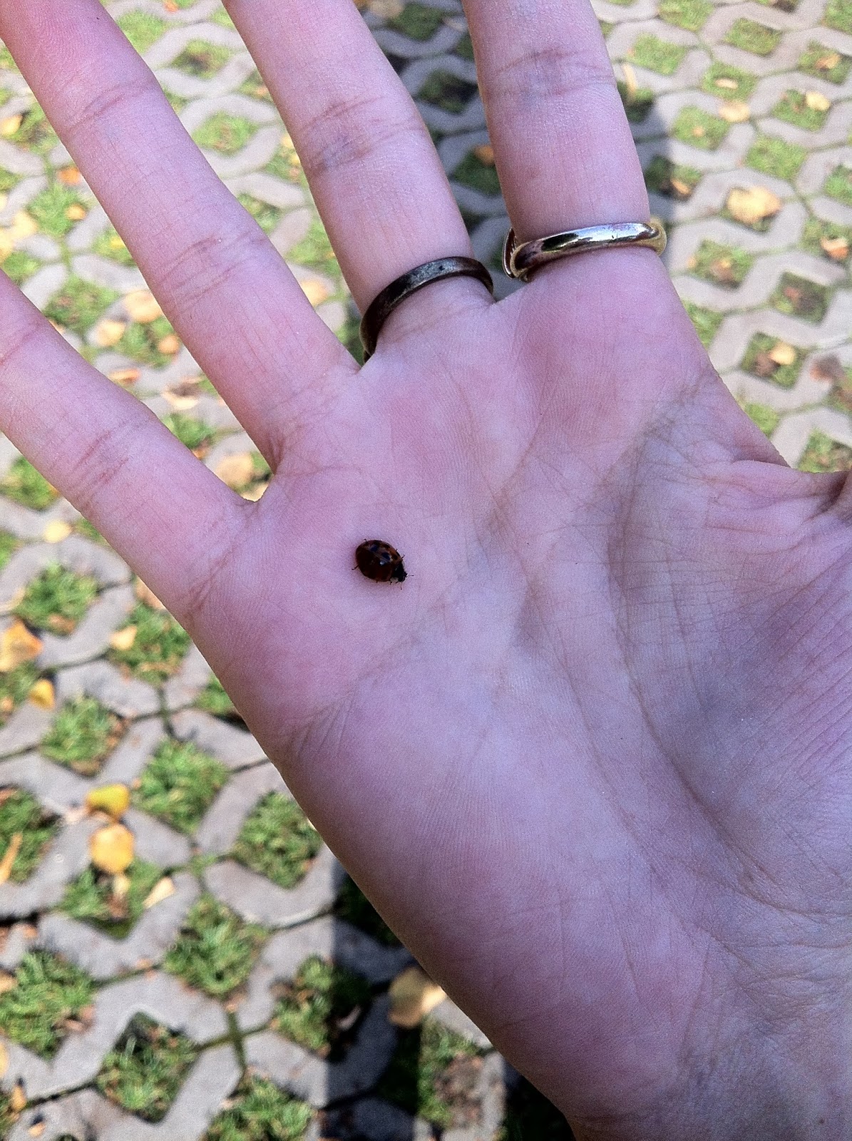 There were so many ladybugs in a park I walked in, and even two of them sat on my shoulder on my jacket without noticing and when I entered the office they flew around me again and sat on a big window. So cute..